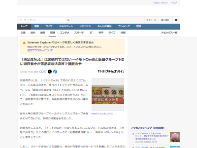 リサーチ会社による調査は、自社や同業他社のサービスを利用したことがあるのかを確認せずに同業他社を含めた各社のウェッブサイトの印象を聞くもので、消費者庁は「客観的な調査に基づくものではなかった」と判断。景品表示法に基づき「著しく優良だと誤認させるものだった」とし、「お客様満足度 No.1」などの表示を止める事などを命じる措置命令を出した。