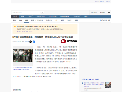 【ニューヨーク共同】米ニューヨークの地下鉄で横行する無賃乗車への対策が難航している。運行する都市圏交通公社(MTA)は昨年12月、すり抜けにくい新型の改札機を導入したが、交流サイト(SNS)で不正な手口を披露する動画が拡散。専門家は「取り締まりよりも運賃を払えない貧困層の支援を優先すべきだ」と指摘している。