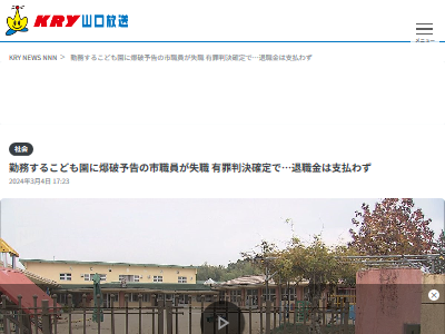 勤務するこども園に爆破予告の市職員が失職 有罪判決確定で…退職金は支払わず – KRY山口放送