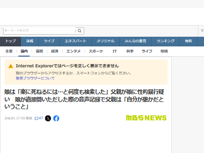 娘は「楽に死ねるには…と何度も検索した」父親が娘に性的暴行疑い 娘が直接問いただした際の音声記録で父親は「自分が愚かだということ」