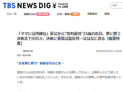 「ママには内緒ね」実父から“性的虐待”23歳の告白、罪に問う決断までの日々、決断に家族は猛反対…父はなに語る【報道特集】
