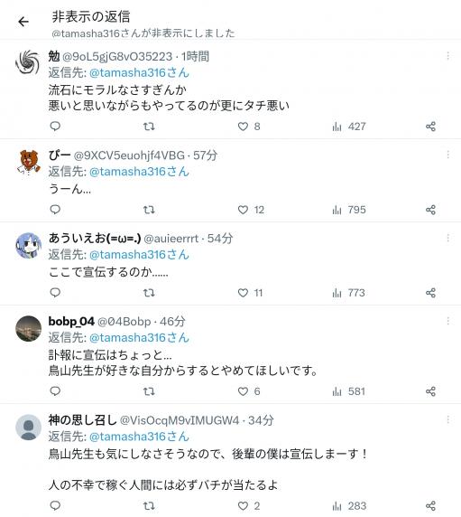 鳥山先生への追悼漫画がバズった絵師さん、自分の作品を宣伝して大炎上ひかり参上1年前发布关注私信0227 ■Xより ★~☆·☆.~同舟*∴*~★ © 版权声明 版权声明 1 本网站名称:华人同舟360 3 本网站的文章部分内容可能来源于网络,仅供大家学习与参考,如有侵权,请联系站长QQ3311406980进行删除处理。 4 本站一切资源不代表本站立场,并不代表本站赞同其观点和对其真实性负责。 5 本站一律禁止以任何方式发布或转载任何违法的相关信息,访客发现请向站长举报 THE END在日趣闻 喜欢就支持一下吧点赞7 分享QQ空间微博QQ好友海报分享复制链接收藏